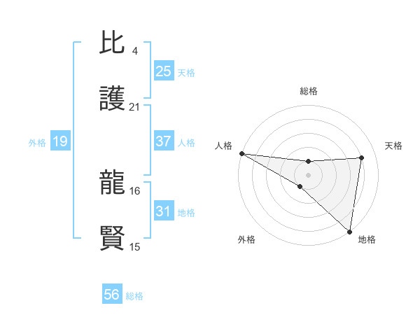 比護 龍賢さんの総格は56画の1点!