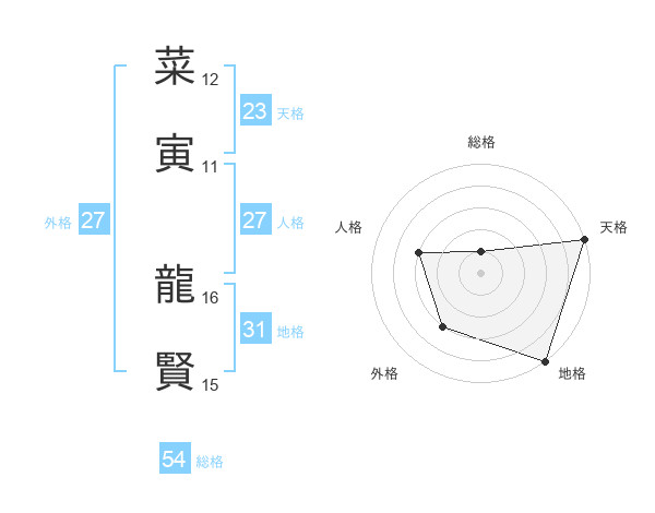 菜寅 龍賢さんを姓名の画数から五運を鑑定