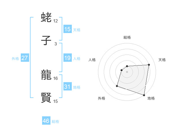 蛯子 龍賢さんの総格は46画の1点!