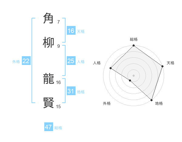角柳 龍賢さんを姓名の画数から五運を鑑定