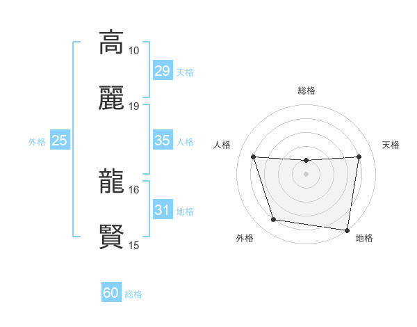 高麗 龍賢さんの総格は60画の1点!