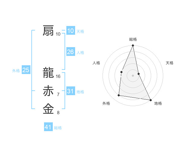 扇 龍赤金さんの総格は41画の5点!