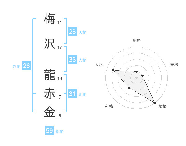 梅沢 龍赤金さんの地格は31画の5点!