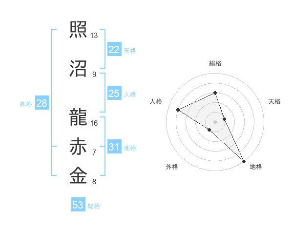 照沼 龍赤金さんを姓名の画数から五運を鑑定