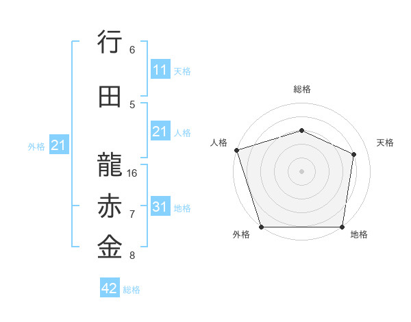 行田 龍赤金さんの総格は42画の3点!