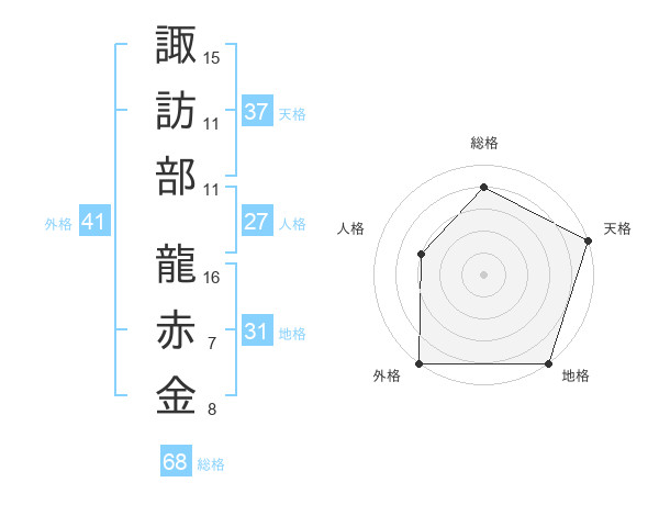 諏訪部 龍赤金さんの外格は41画の5点!