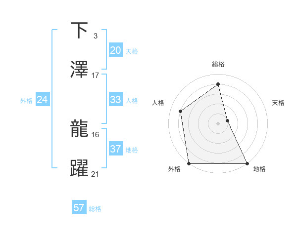 下澤 龍躍さんを姓名の画数から五運を鑑定