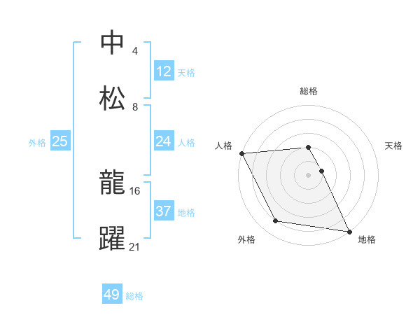 中松 龍躍さんの総格は49画の2点!