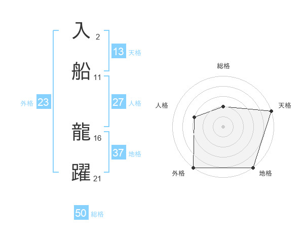 入船 龍躍さんの総格は50画の2点!