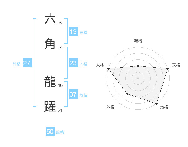 六角 龍躍さんの総格は50画の2点!
