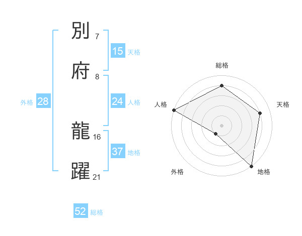 別府 龍躍さんの総格は52画の4点!