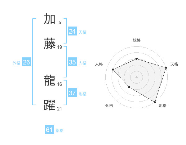 加藤 龍躍さんの総格は61画の3点!
