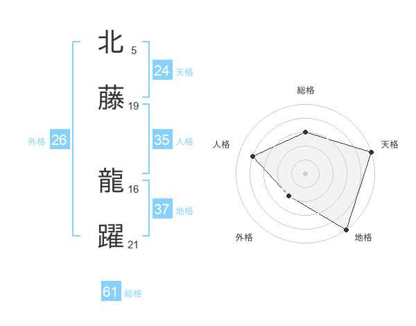 北藤 龍躍さんの総格は61画の3点!