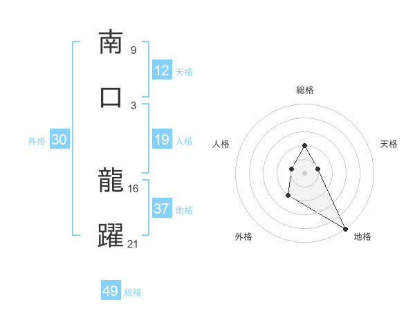 南口 龍躍さんの地格は37画の5点!