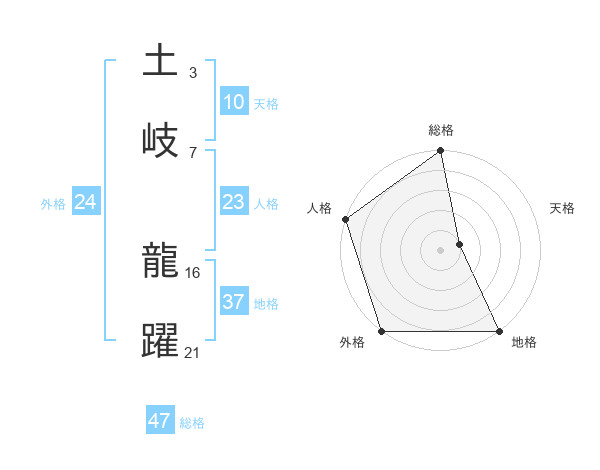 土岐 龍躍さんの総格は47画の5点!