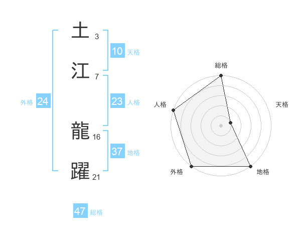 土江 龍躍さんを姓名の画数から五運を鑑定