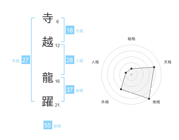 寺越 龍躍さんの総格は55画の1点
