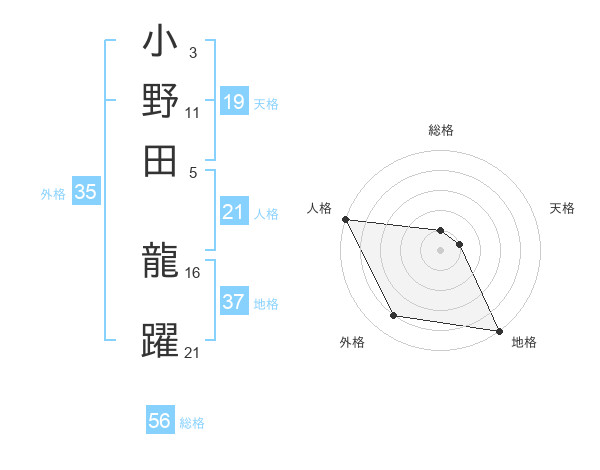 小野田 龍躍さんを姓名の画数から五運を鑑定