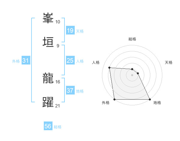 峯垣 龍躍さんを姓名の画数から五運を鑑定