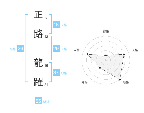 正路 龍躍さんの総格は55画の1点!