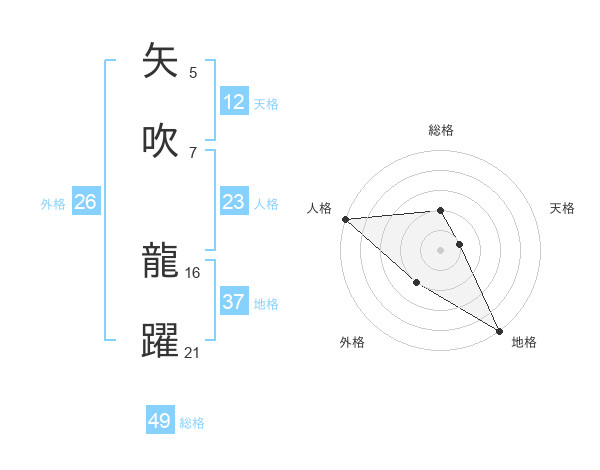 矢吹 龍躍さんの人格は23画の5点!