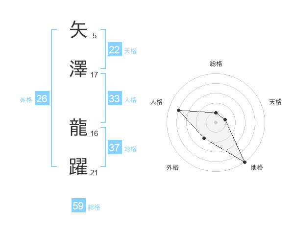 矢澤 龍躍さんを姓名の画数から五運を鑑定