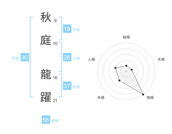 秋庭 龍躍さんの地格は37画の5点!