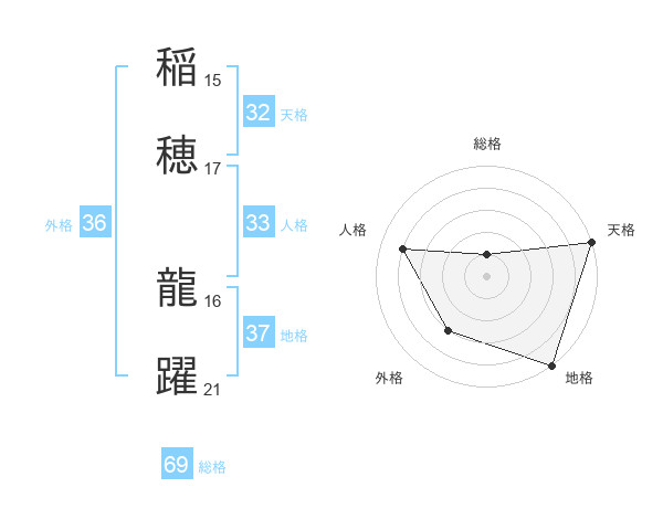 稲穂 龍躍さんを姓名の画数から五運を鑑定