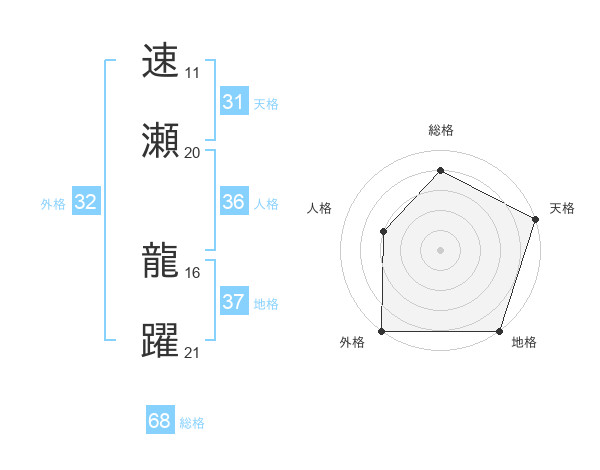 速瀬 龍躍さんの天格は31画の5点!