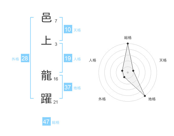 邑上 龍躍さんの総格は47画の5点!