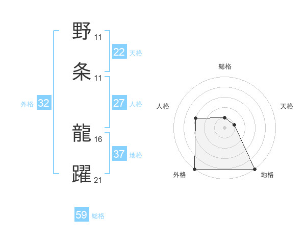 野条 龍躍さんの地格は37画の5点!