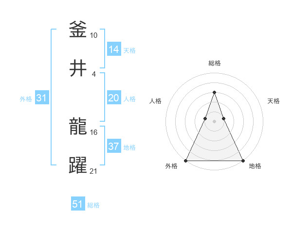 釜井 龍躍さんの総格は51画の3点!