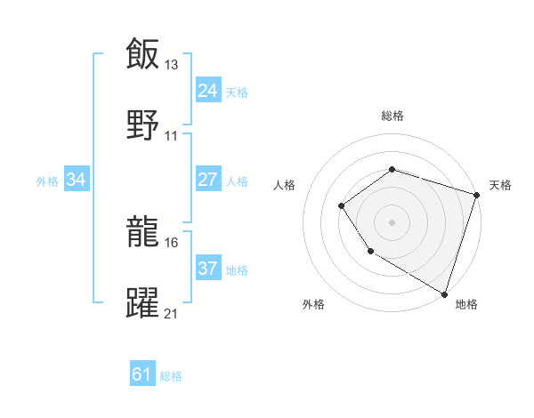 飯野 龍躍さんを姓名の画数から五運を鑑定