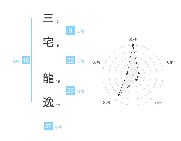 三宅 龍逸さんの総格は37画の5点!