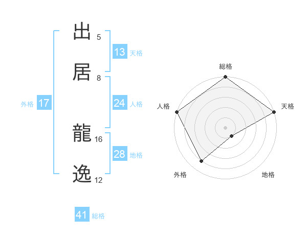 出居 龍逸さんの総格は41画の5点!