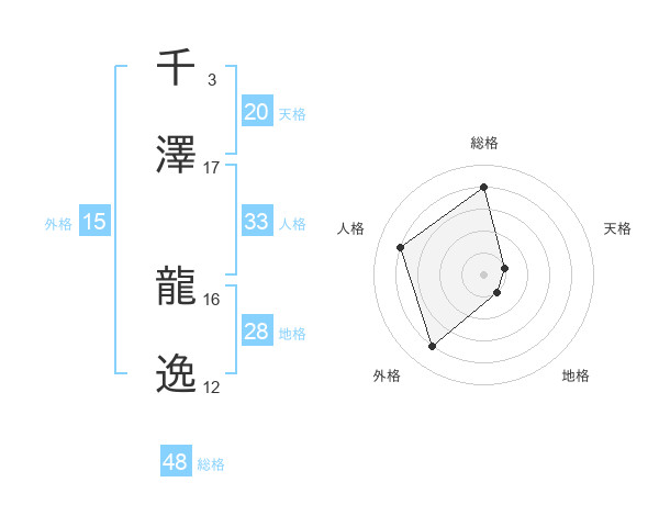 千澤 龍逸さんを姓名の画数から五運を鑑定