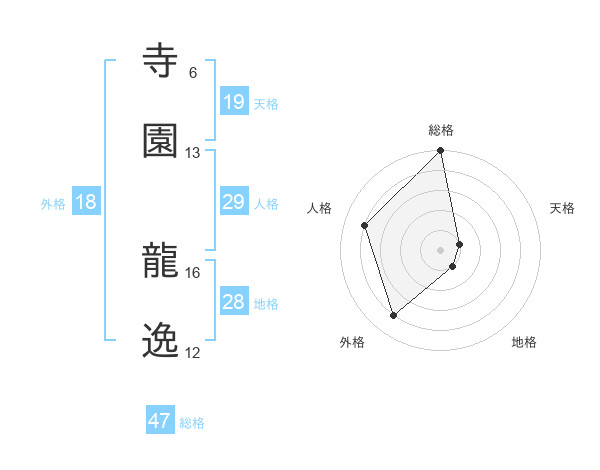 寺園 龍逸さんの総格は47画の5点!