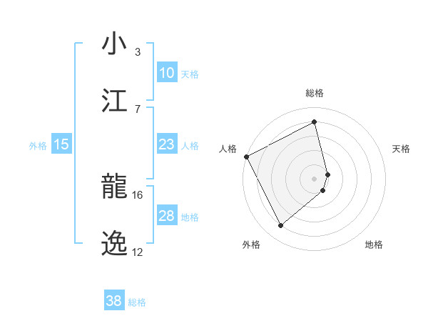 小江 龍逸さんを姓名の画数から五運を鑑定