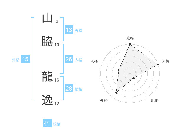 山脇 龍逸さんを姓名の画数から五運を鑑定