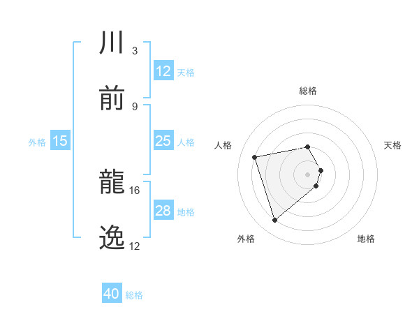 川前 龍逸さんを姓名の画数から五運を鑑定