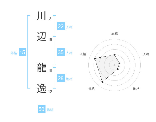 川辺 龍逸さんの総格は50画の2点!