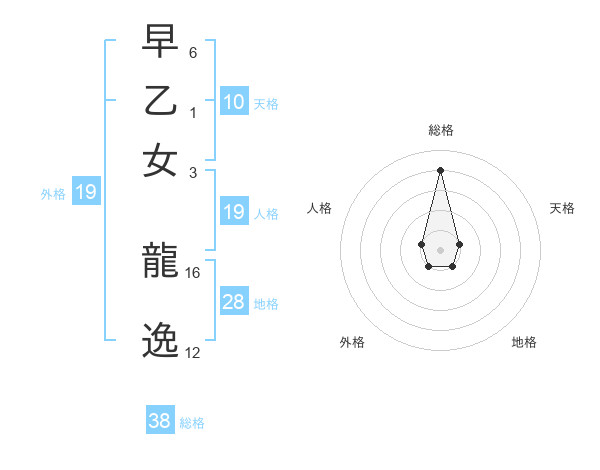 早乙女 龍逸さんの総格は38画の4点!