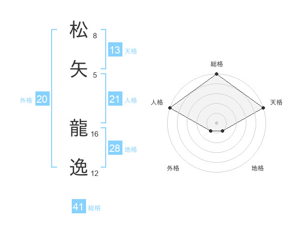 松矢 龍逸さんを姓名の画数から五運を鑑定
