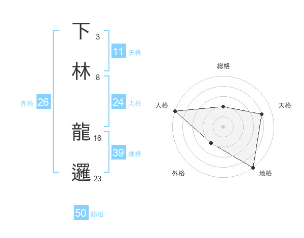 下林 龍邏さんを姓名の画数から五運を鑑定