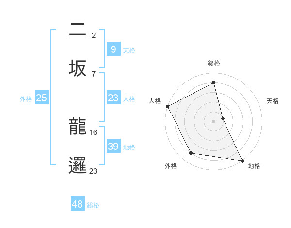 二坂 龍邏さんを姓名の画数から五運を鑑定