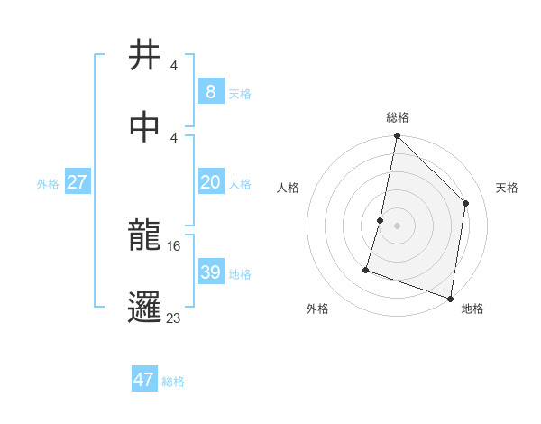 井中 龍邏さんを姓名の画数から五運を鑑定