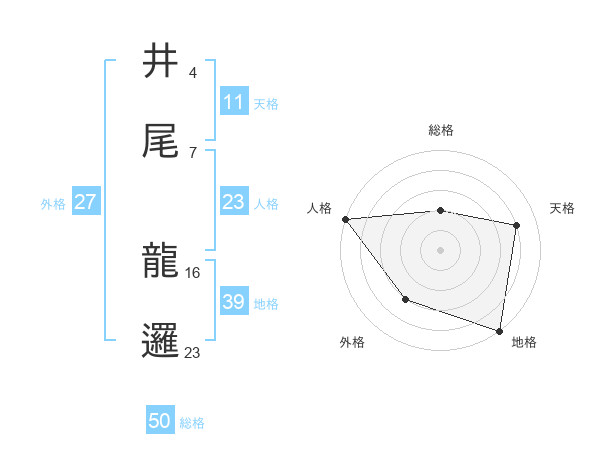 井尾 龍邏さんの総格は50画の2点!