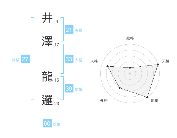 井澤 龍邏さんを姓名の画数から五運を鑑定