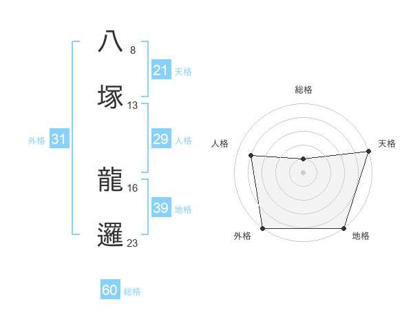 八塚 龍邏さんを姓名の画数から五運を鑑定