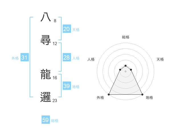 八尋 龍邏さんの総格は59画の1点!